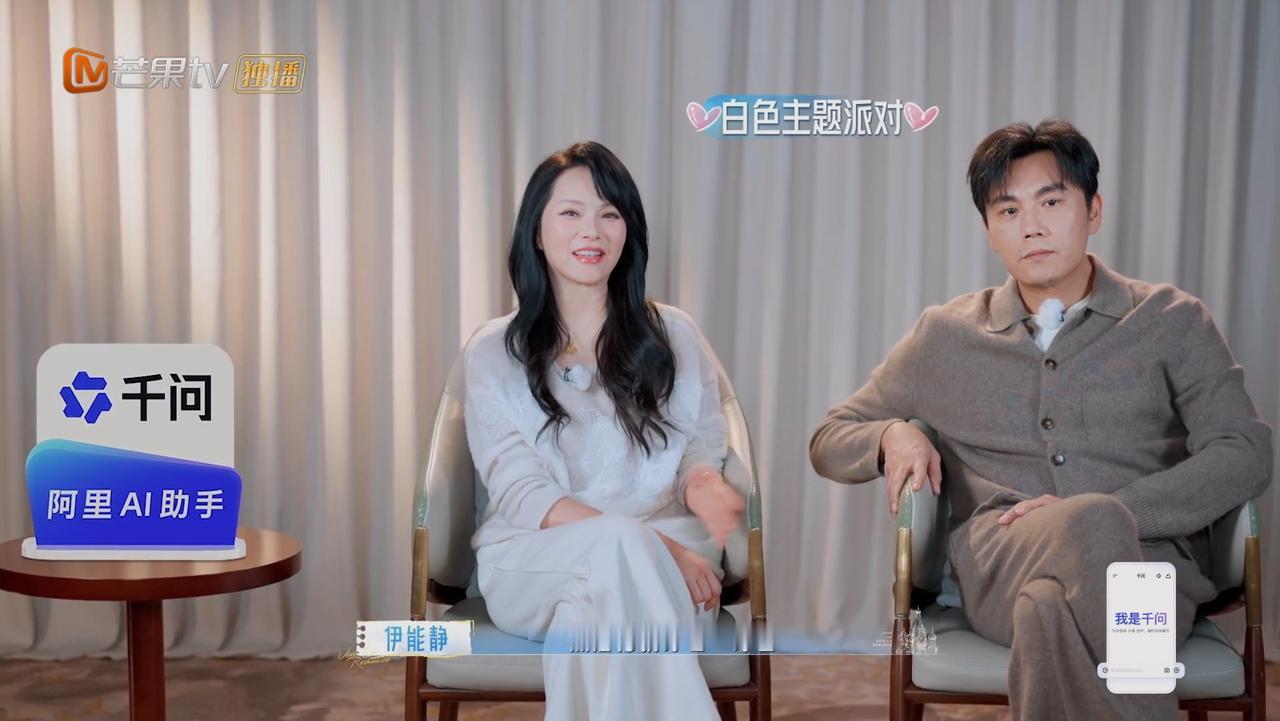 主持人问秦昊,当年第一次见伊能静时的情景。伊能静抢着说,他就像白马王子一样。