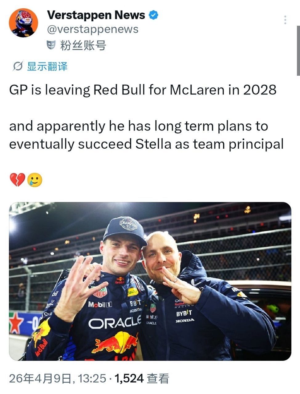 维斯塔潘的比赛工程师GP预计在2028年转会迈凯伦车队,据悉GP已经和迈凯伦车队完成签约,但他与红牛车队的合同要到2027年底才到期,因此他将于2028年开始为迈凯伦车队效力。F1赛车2026F1迈阿密大奖赛