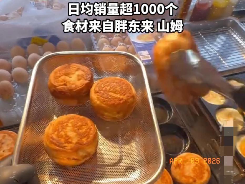 这得益于顾客对他的信任,因为他的摆摊食材全是从胖东来和山姆进的货,食材没有任何添加剂,全靠食材原本的口味留住了顾客!现在每天一出摊,顾客就会排起长队购买,肉蛋堡5元一个,每天大约能卖1000个左右!