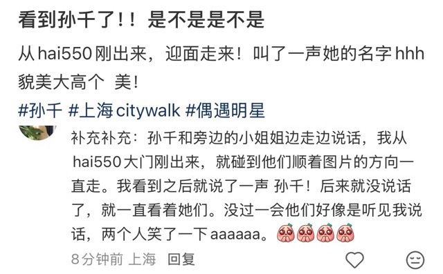 网友在上海街头偶遇孙千这大长腿太有辨识度了上海街头偶遇孙千网友上海偶遇孙千