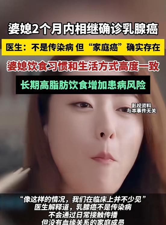 最近宁波一对婆媳,婆婆摔了一跤摸到硬块,去医院一查是乳腺癌;儿媳在陪护时觉得胸口不太对劲,顺手也做了检查,结果也是乳腺癌。