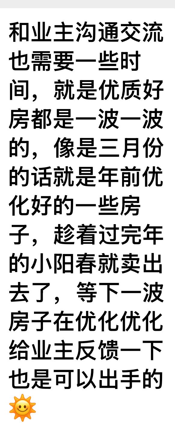 小哥还说:“和业主沟通交流也需要一些时间,就是优质好房源都是一波一波出的,比如三月份就是年前积累的一些房子,趁着过完年的小阳春就都卖出去了”。