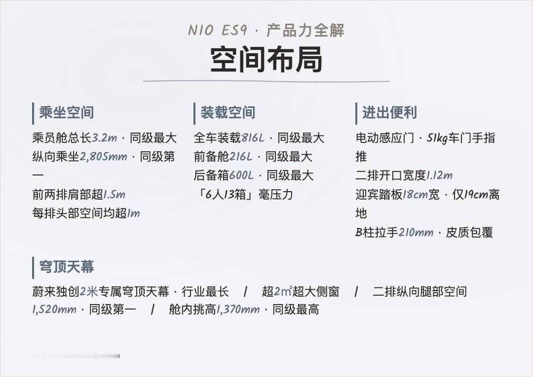 蔚来ES9的细节特别多,我整理了9张卡片,相比文字更容易阅读和转发。蔚来ES9公