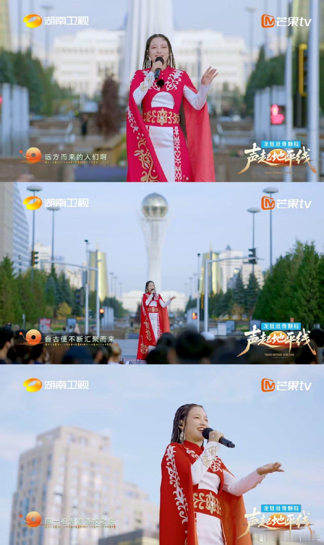 芒果音综格局声起地平线芒果音综立意太高了!努尔乔尔蓬用歌声连接丝路各族人民,同根同源,同心同向