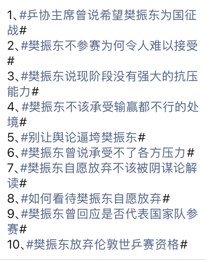 乒协主席曾说希望樊振东为国征战 距离伦敦世乒赛公布不足一天,还有多少个黑热搜等着