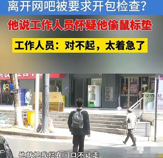 原来网吧老板怀疑他偷了网吧的鼠标垫,没有任何凭证,就直接开口指控,语气硬邦邦的,还给出了二选一的要求,要么让他们当场打开背包翻查,证明自己的清白,要么就耗在这里,等他们报警让警察来抓人。