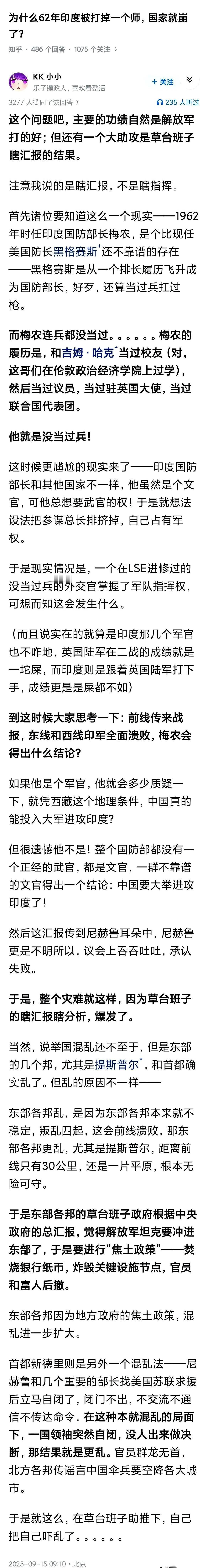 很多人想不通,1962年那场仗,我们只打掉了对方一个王牌师,为什么偌大一个印度,就跟天塌了一样,直接崩了?