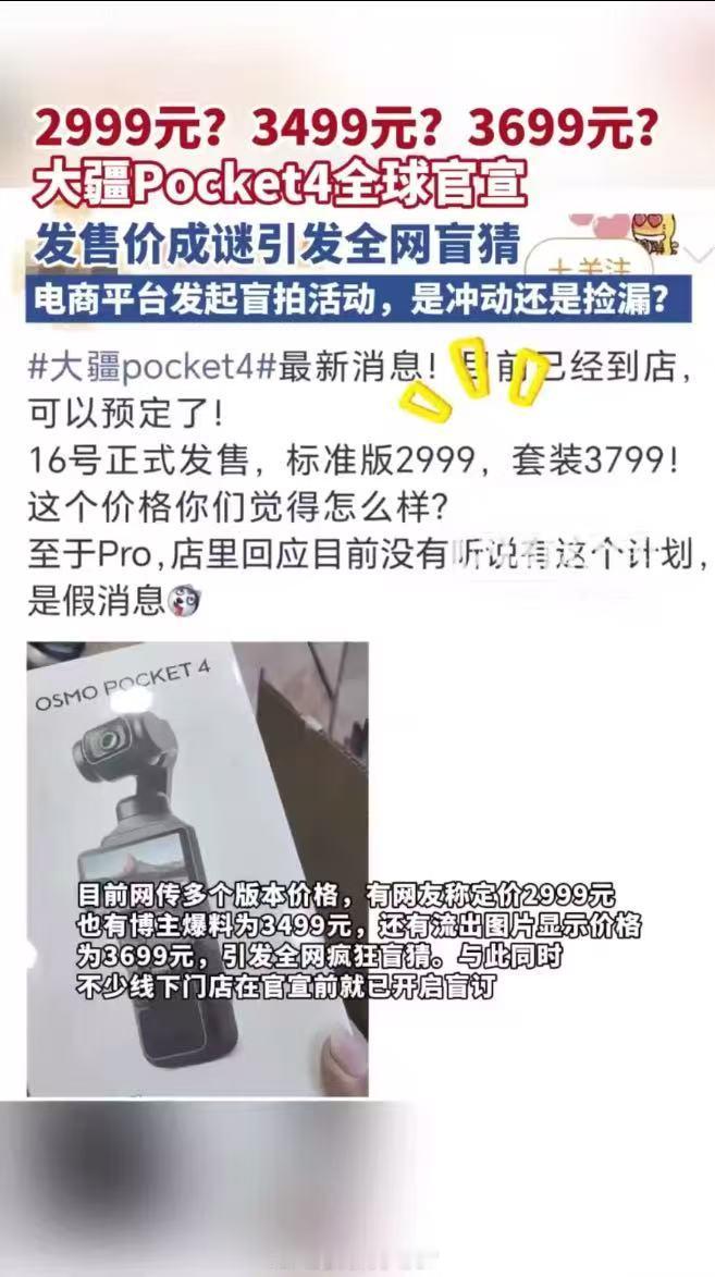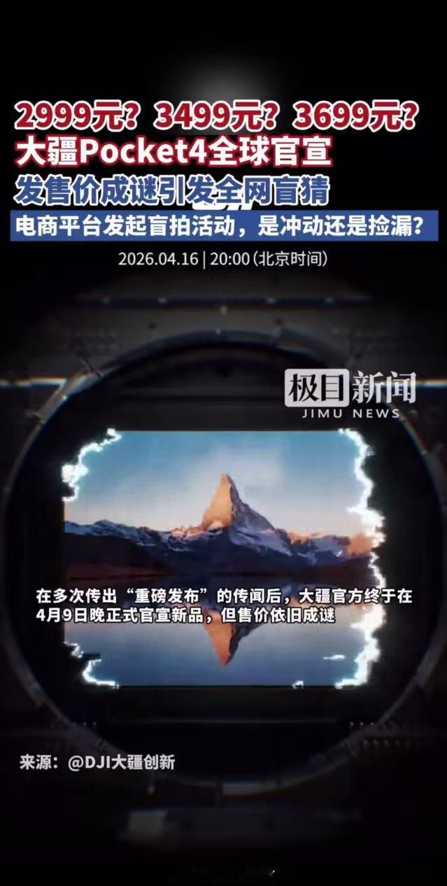 pocket4全球官宣发售价成谜大疆pocket4新品盲拍 新品来了的消息超开心,但价格成谜有点抓心!大家猜得热闹,线下还能盲订,你会加入吗?