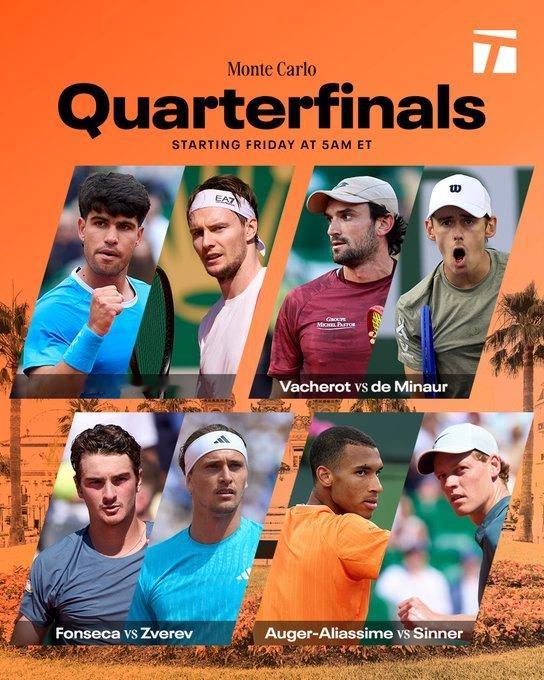 4场1/4决赛放在一天里打完,多美啊!对于网球迷来说,今天也应该算是本赛季迄今以来优质对决密度和观赛爽感极强的一天了。ATP