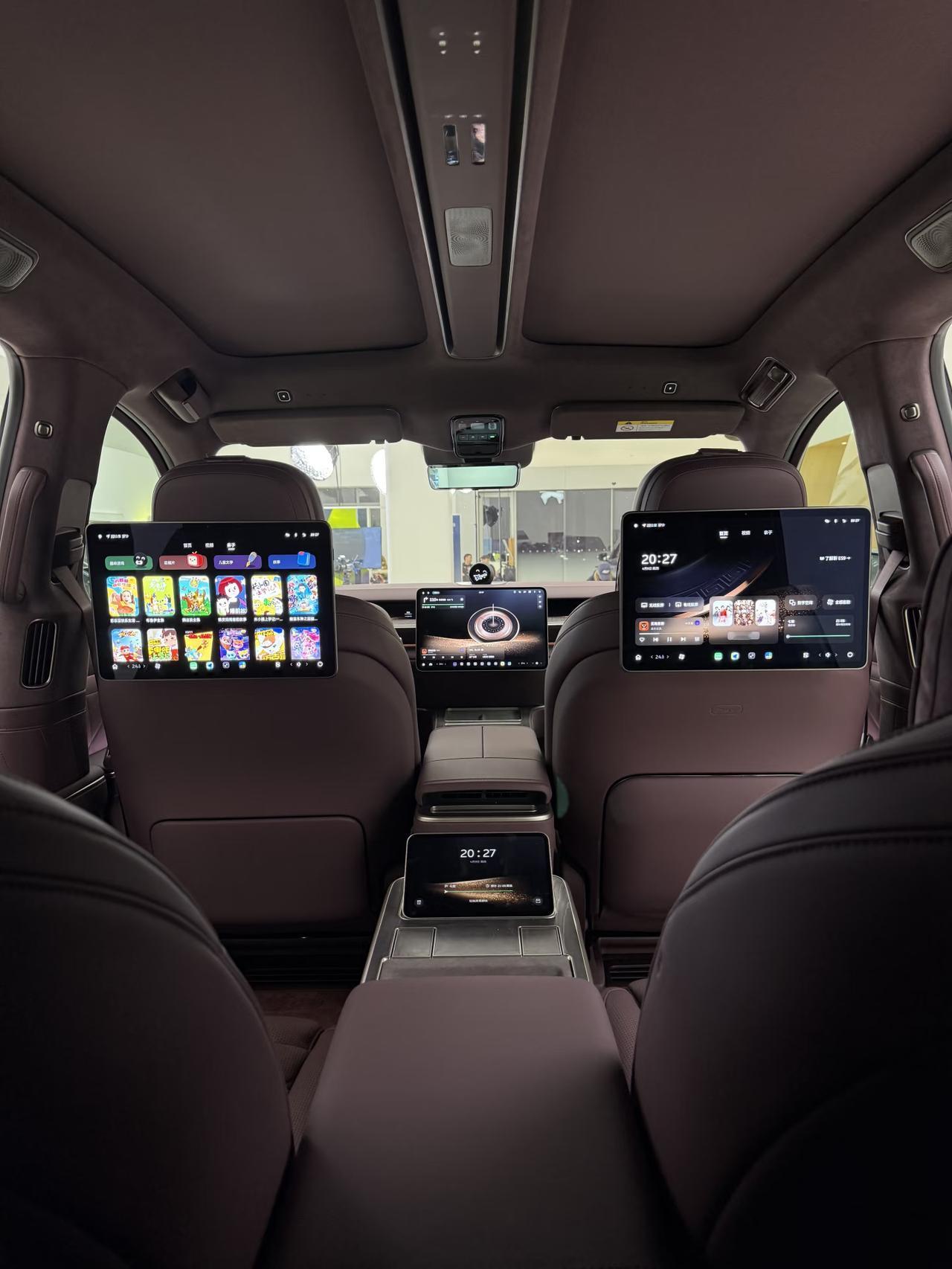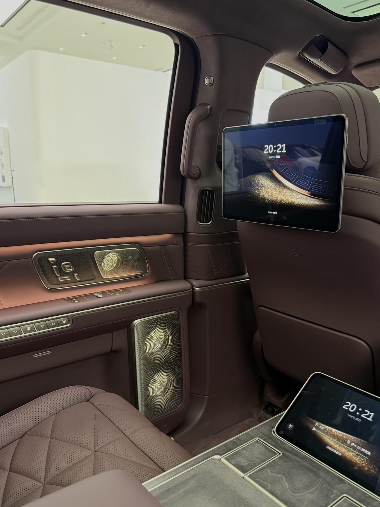 内饰Nappa真皮、枫影真木、星空顶等等,电吸门、冰箱、音响系统、hud也是全系标配。