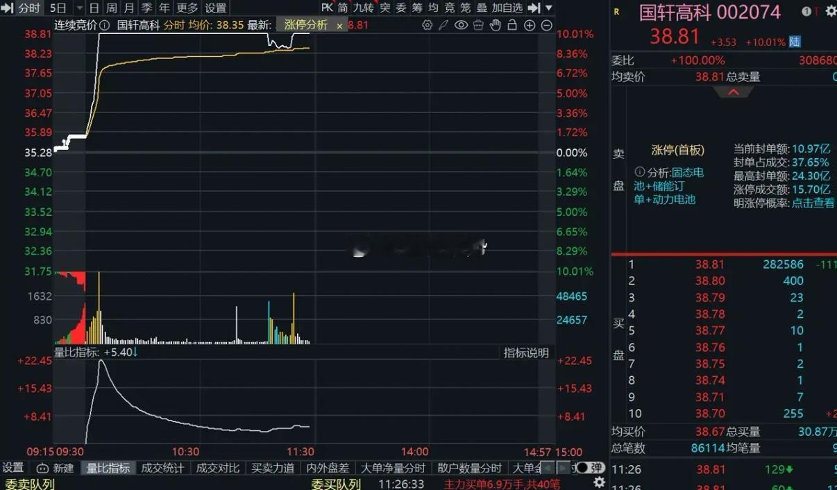 中军是国轩高科,早盘快速上板,大盘跳水时开板了,近上午收盘快速回封,力度还可以。人气标的大东南也跟随中军上板,板块有上海洗霸、中国动力、华源控股、趋势股圣阳股份等跟随上板。同时,大盘跳水,板块多只个股炸板,如后排的福田、洪田、石大等,为延续性埋下地雷。这个板块能否走出,承接光纤的流动性,要看周一有没有上二板的,观察标的为大东南和中军国轩高科,否则视作题材一波流。