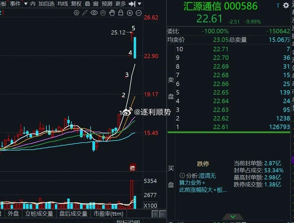 先看光纤板块,明天高潮,今天要兑现的,特别是中军长飞光纤已经涨停,板块达到高潮巅峰,若情绪继续加强,则有资金来接力,若没有,板块是要分歧回调的,竞价就看出,板块一字先锋汇源已经力竭,连续3个一字和昨天的放量加速板,已经透支了做多动能,中军的上板没有能加持板块,结果竞价开在水下-2位置,开盘后被资金核跌停,板块就面临回调,中军长飞也被杀到深水,昨天反包不成功的通鼎互联近跌停,这样光纤就要放一放了。