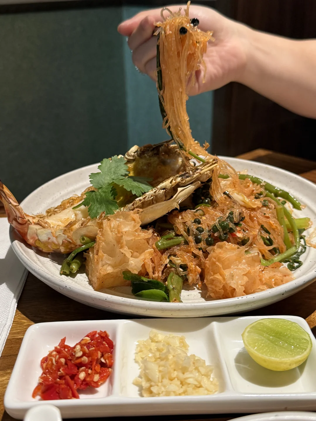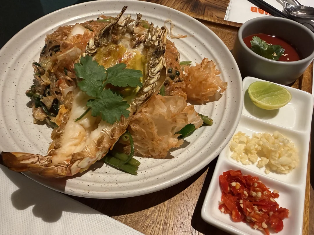 上面的烤虾也很加分,虾肉口感挺不错,配着炒粉一起吃层次会更丰富。如果你喜欢这种有点辣、有点香、有点锅气的东南亚炒粉类,这道可以点