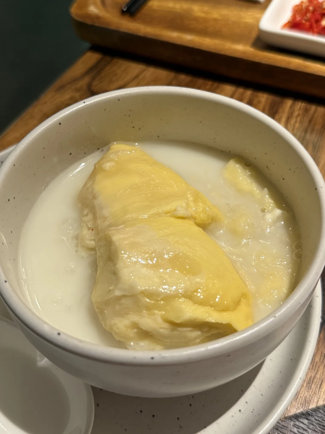 这个真的有让我意外 因为平时很多甜品我都怕太腻,但它的榴莲椰子糯米饭居然是热的!这个点很加分。热热的糯米饭配上椰奶和榴莲,吃起来会更香、更软糯,如果你本身喜欢榴莲,真的可以点。