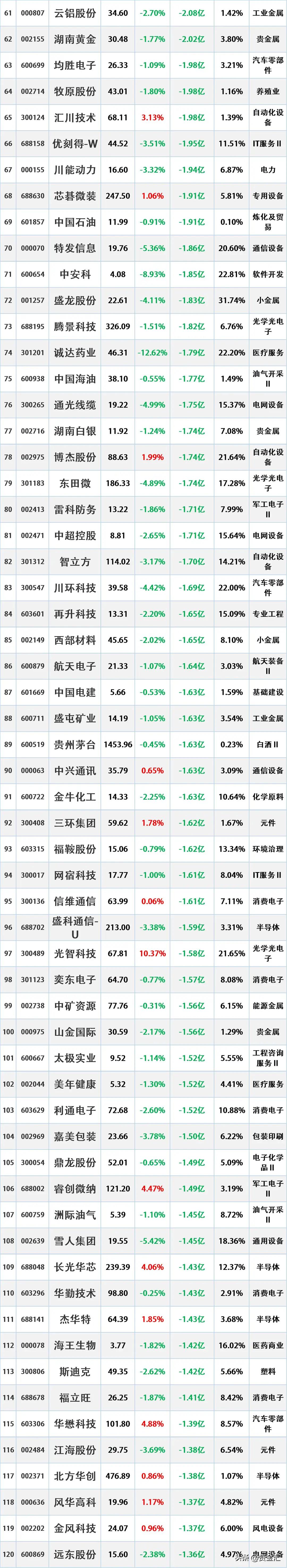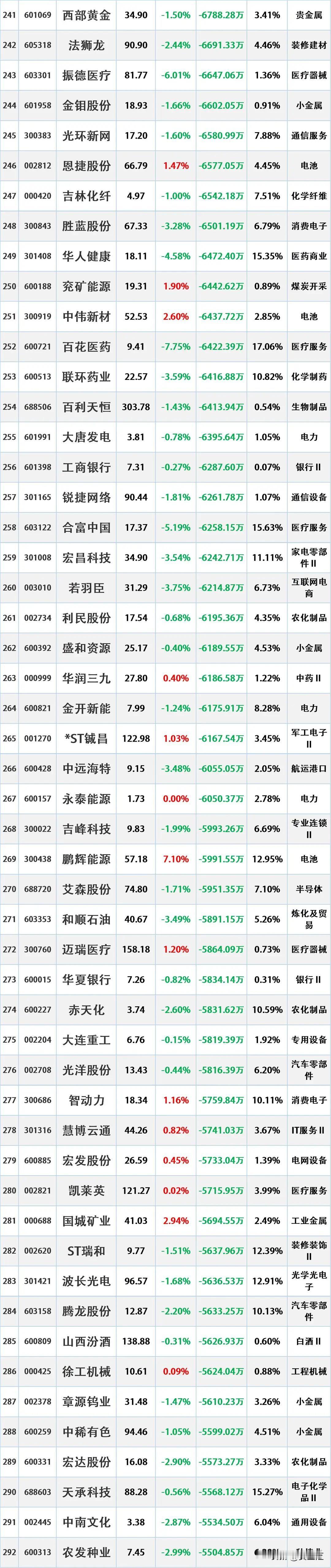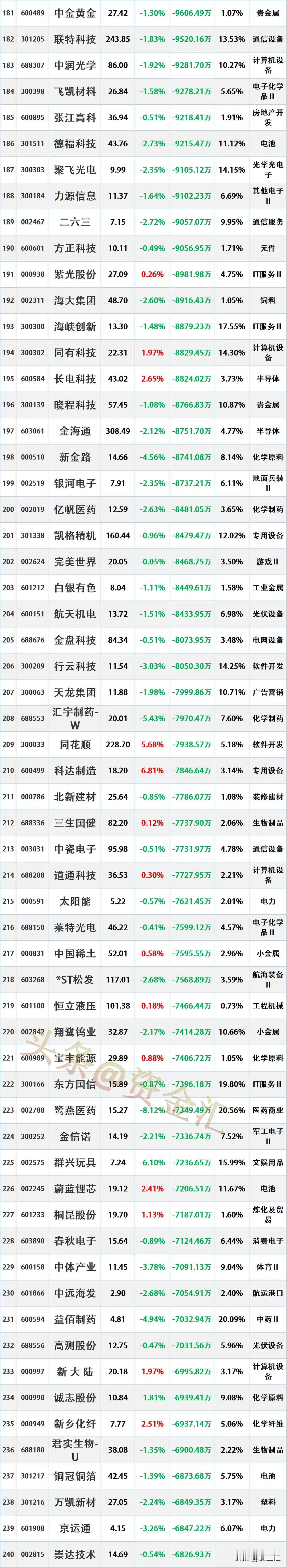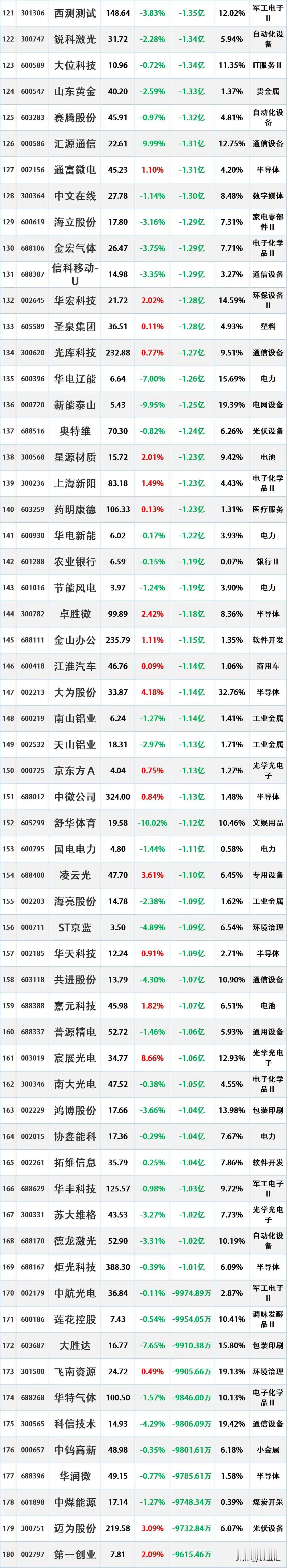 4月9日主力资金净流入—净流出前20名榜单