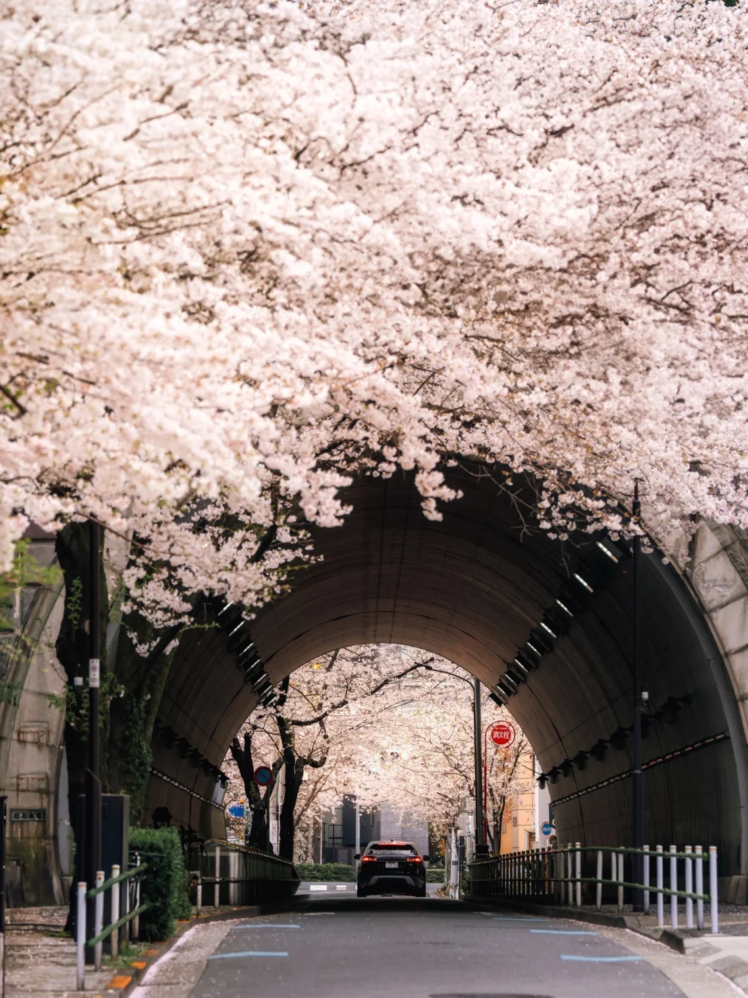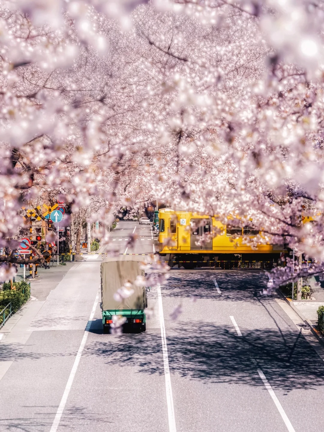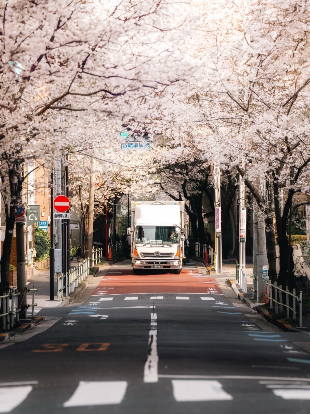 街道被樱花轻轻盖住
