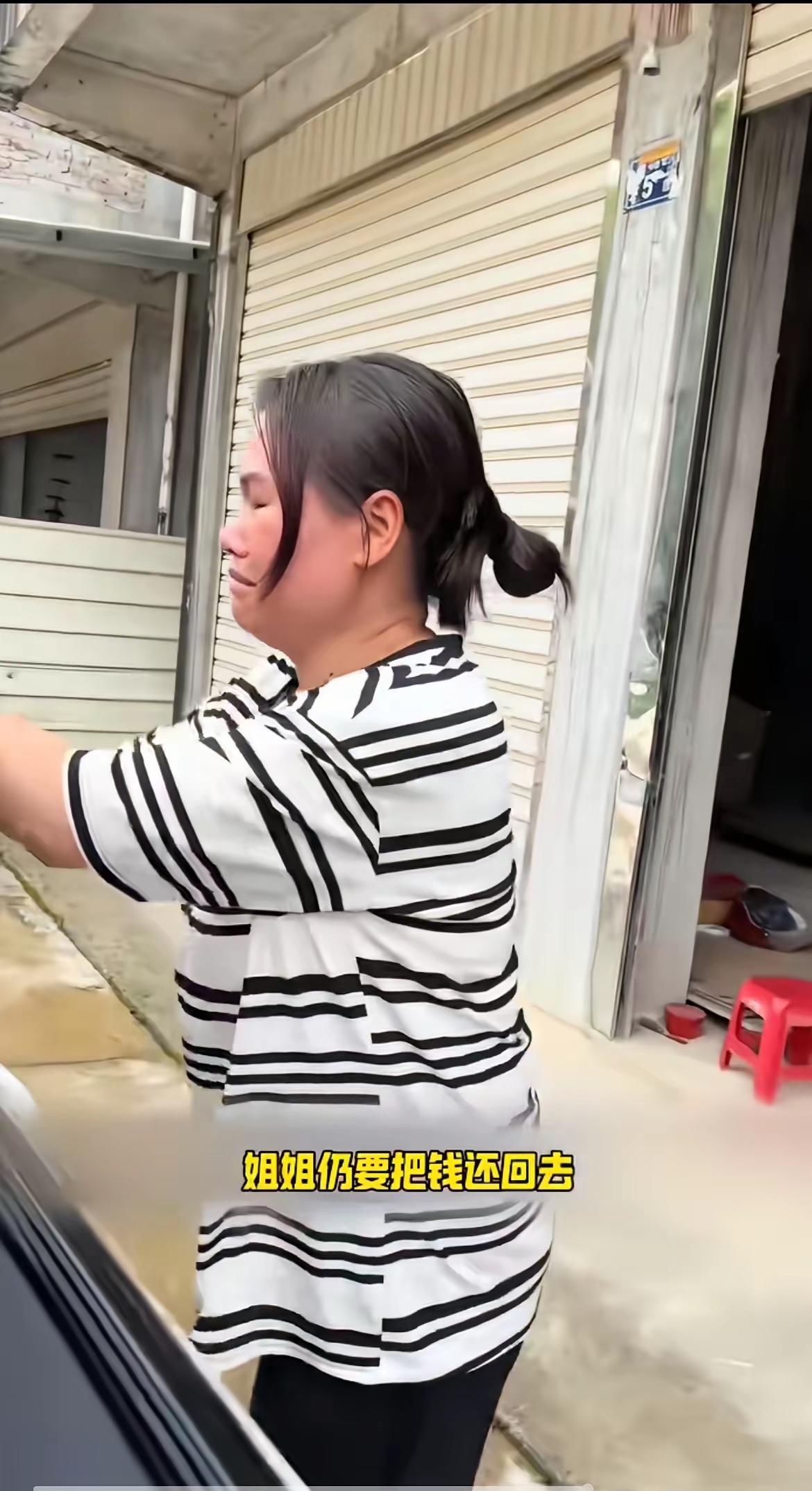 姐姐依旧不肯收,一次次把钱往弟弟怀里推,两人僵持不下。