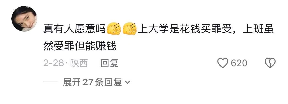 大学vs上班嘴上骂骂得了,谁不想在大学混一辈子不上班。