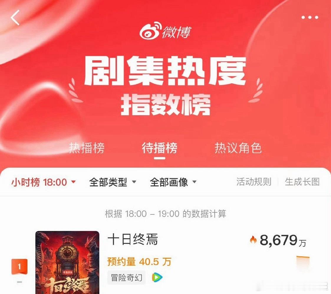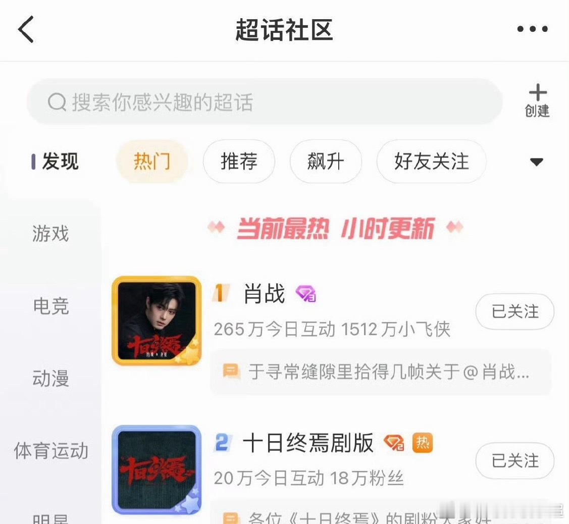 肖战带着他的十日终焉,把超话热门榜、影视综超话热门总榜、剧集热度榜都拿下了。肖战