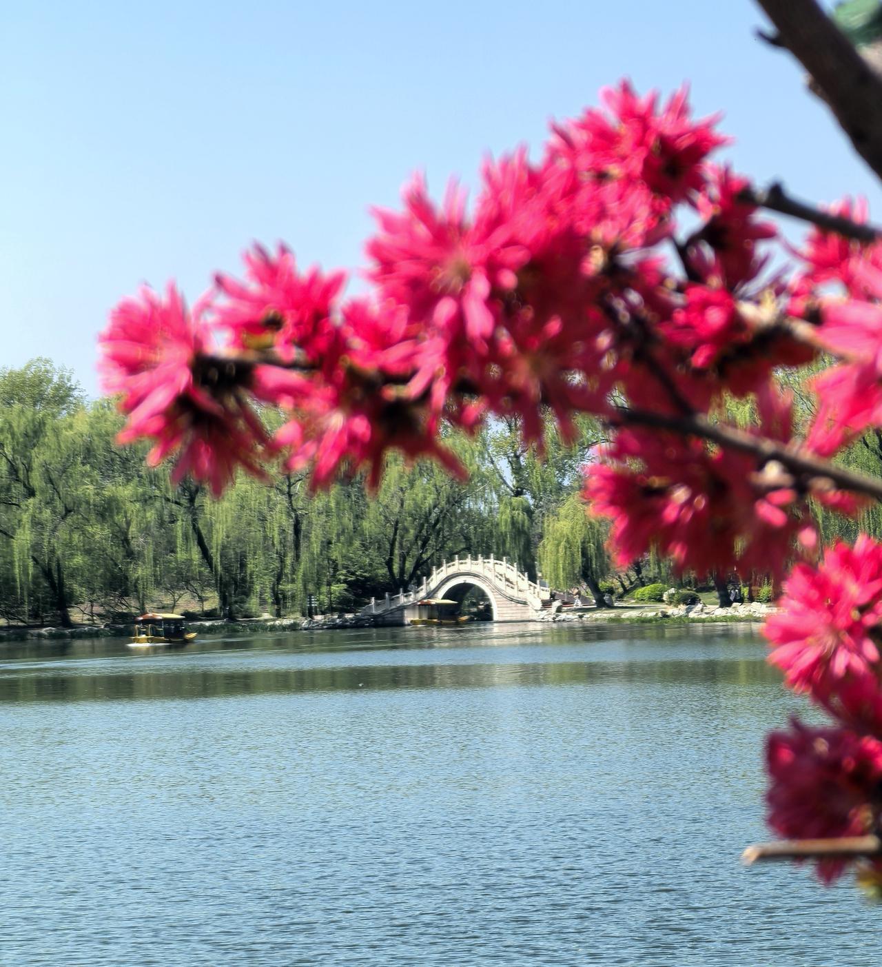 有没有漂亮的花朵图片吗菊花桃,圆明园遗址公园南门湖边