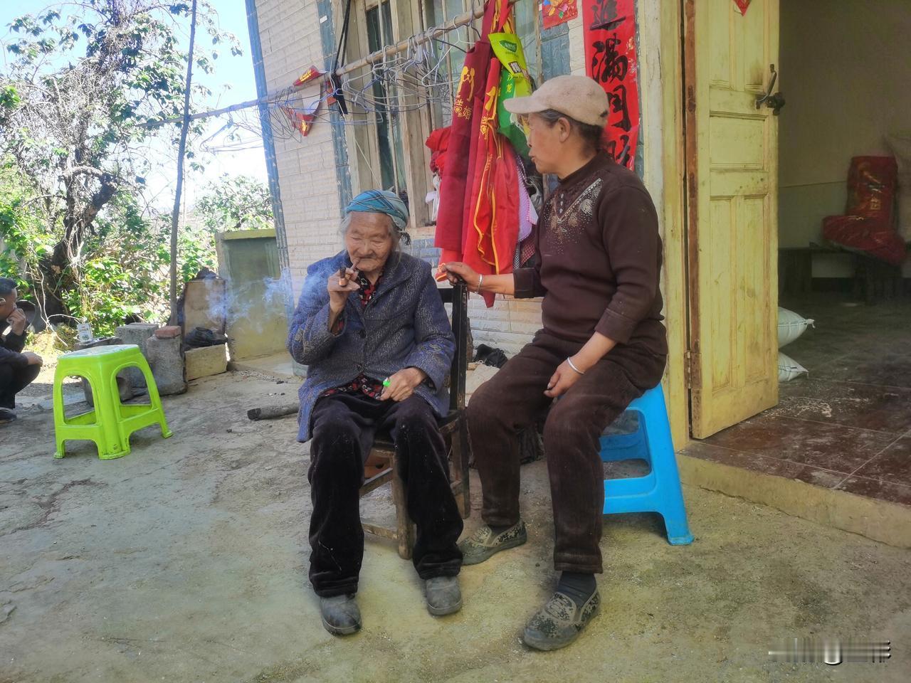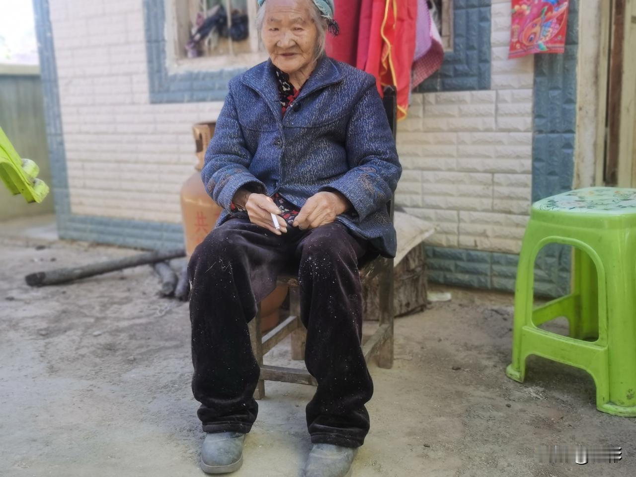 分享一下你随手拍下的照片96岁老奶奶烟瘾真大,抽了香烟接着旱烟。长寿的秘密原来不