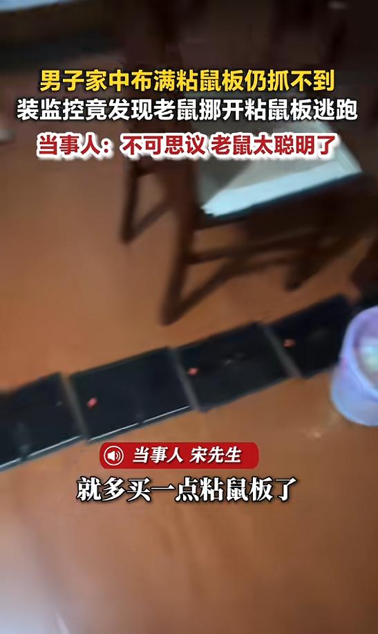 “万万没想到!”近日,安徽马鞍山,一男子见家里有老鼠,就买了许多粘鼠板放在家里各个地方,但始终抓不到,为了一探究竟,男子装了监控,结果发现老鼠竟将粘鼠板挪开逃跑,这让男子不可思议,觉得老鼠太聪明了!网友:太震惊了!