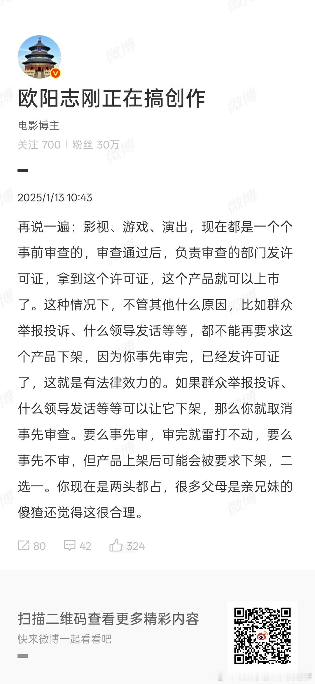 还是有很多人觉得影视作品你随意让他下架是没问题的。关于这个问题,之前已经反复说过了。