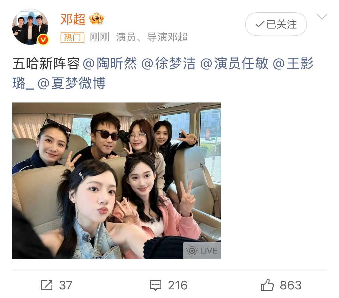 五哈新阵容邓超陶昕然徐梦洁任敏王影璐夏梦五哈新阵容只有邓超一个男嘉宾哈哈哈哈哈 邓超的“艳福”不浅,但以五哈的尿性,这福气大概率是“折磨”。陈赫别酸了,下期可能就轮到你了。期待超哥和姐姐们的化学反应。