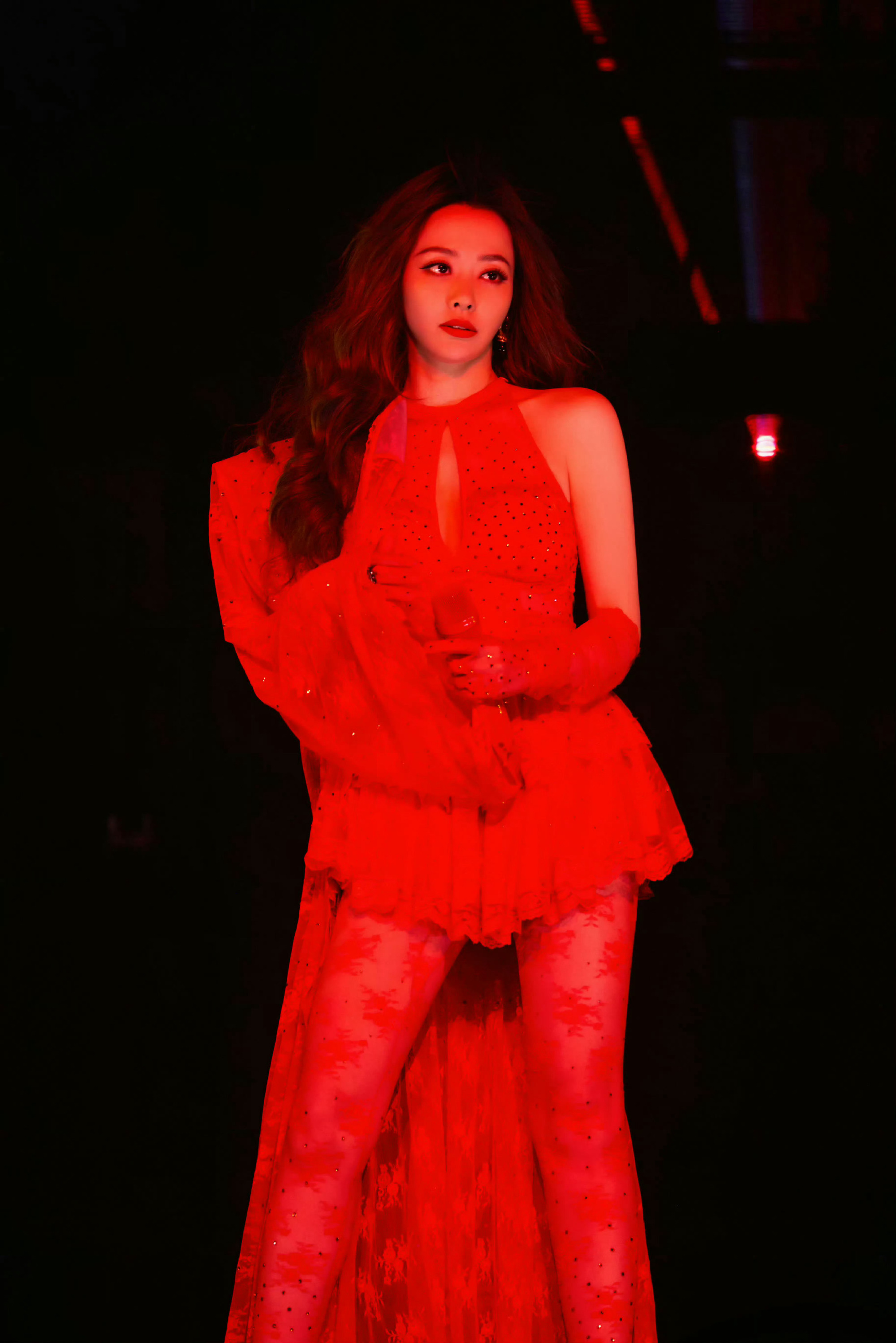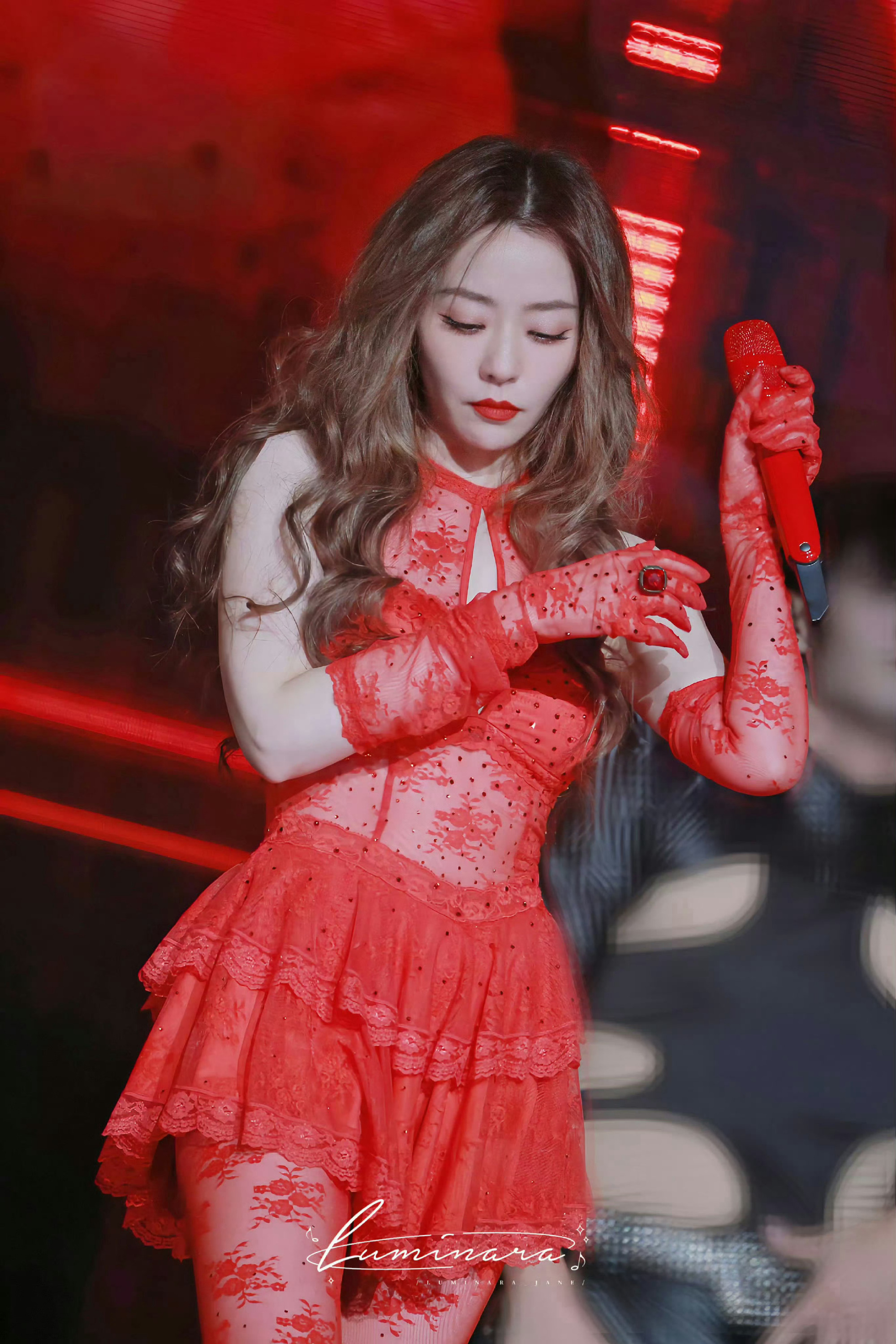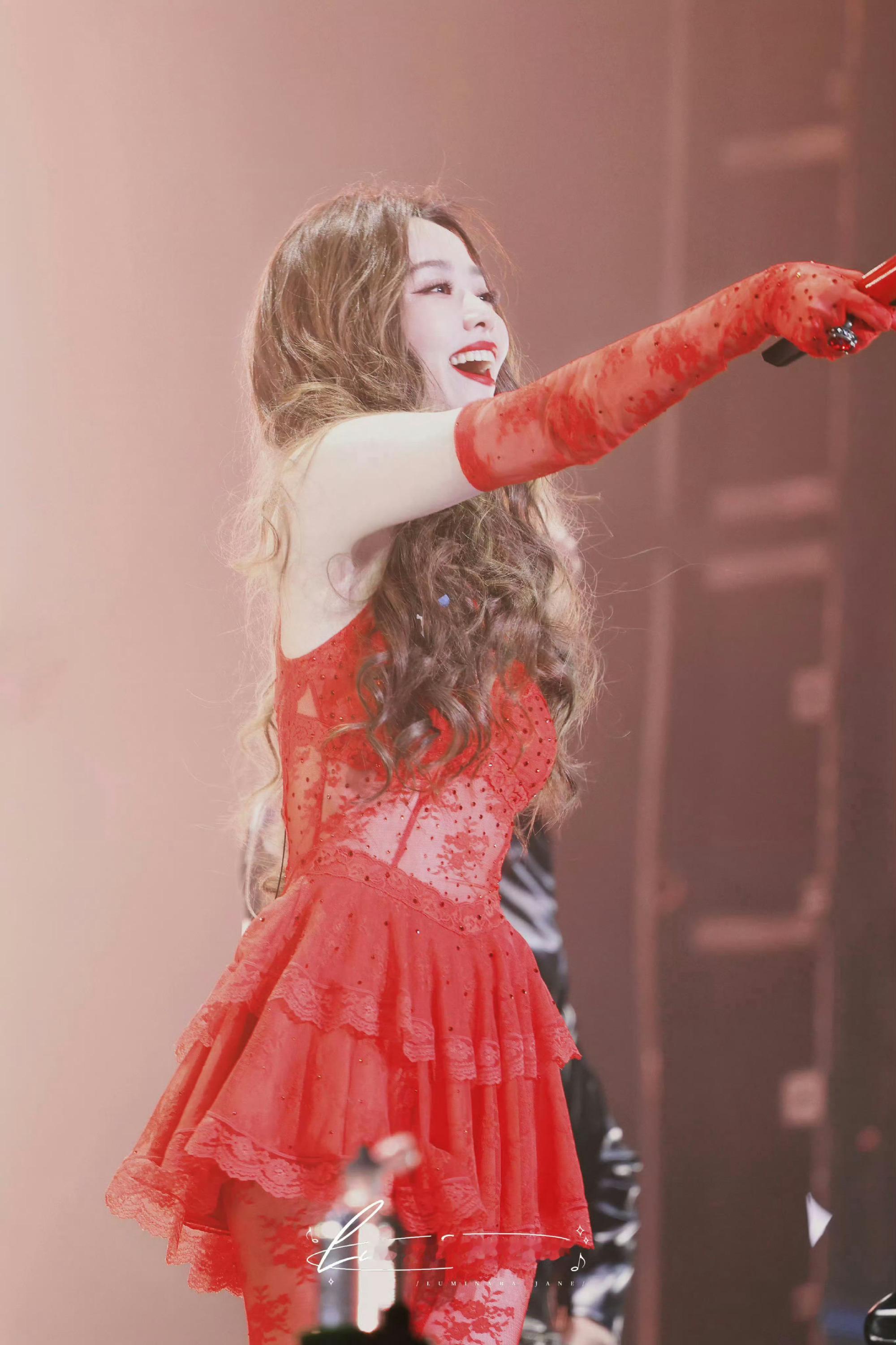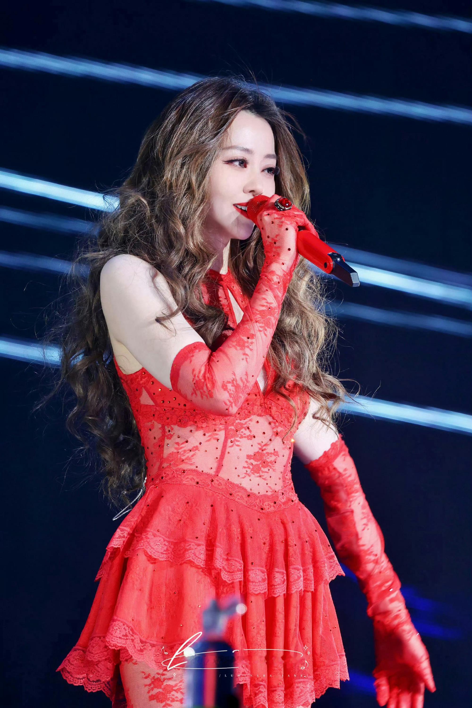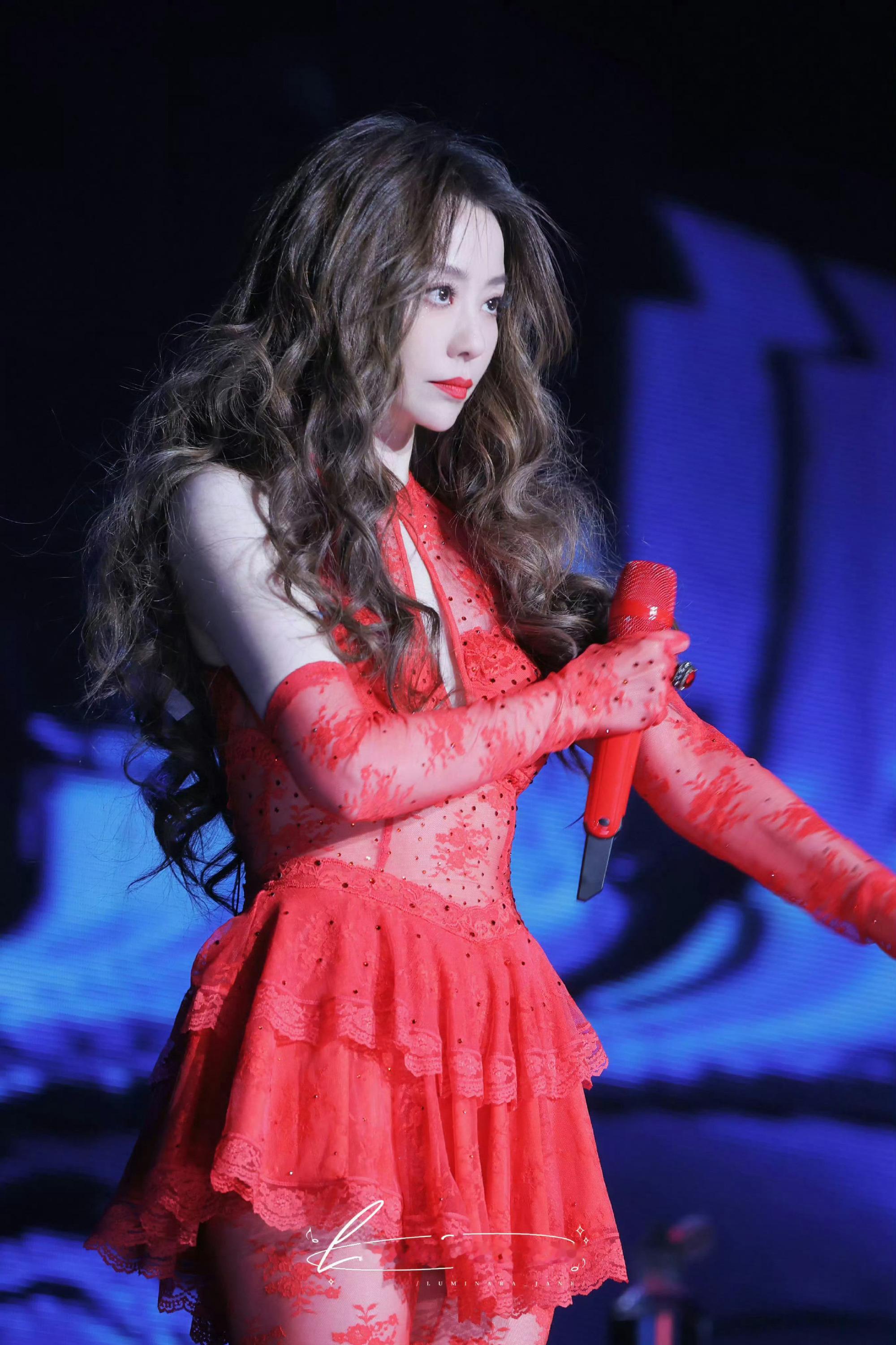 张靓颖红色蕾丝顶级魅魔,好迷人的舞台妆造。张靓颖