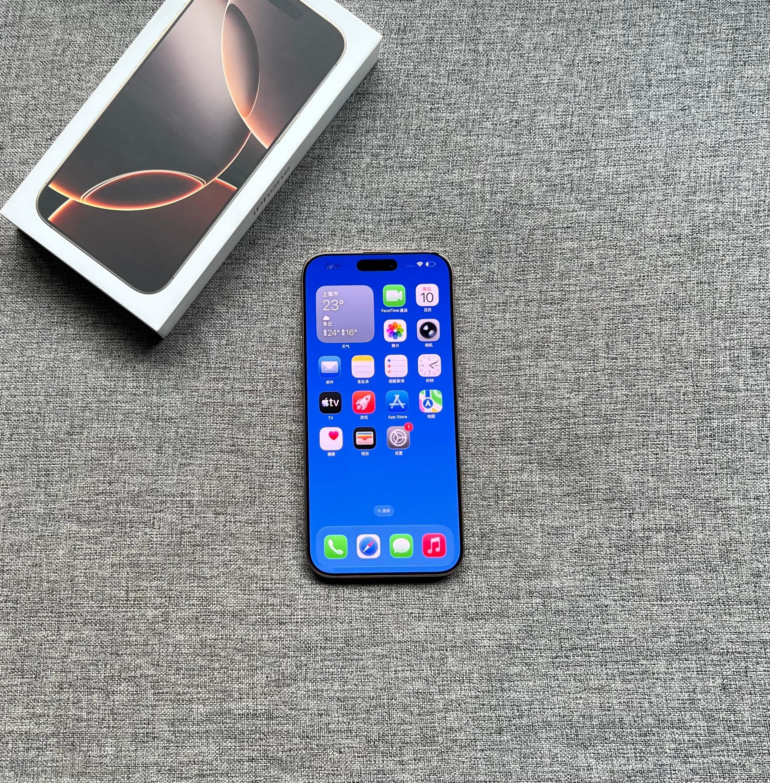 港行双卡iPhone16 Pro Max 1TB沙漠色,屏幕完美,中框轻微划痕,🔋效率93,盒子配件全套。店保三个月非人为损坏。7599