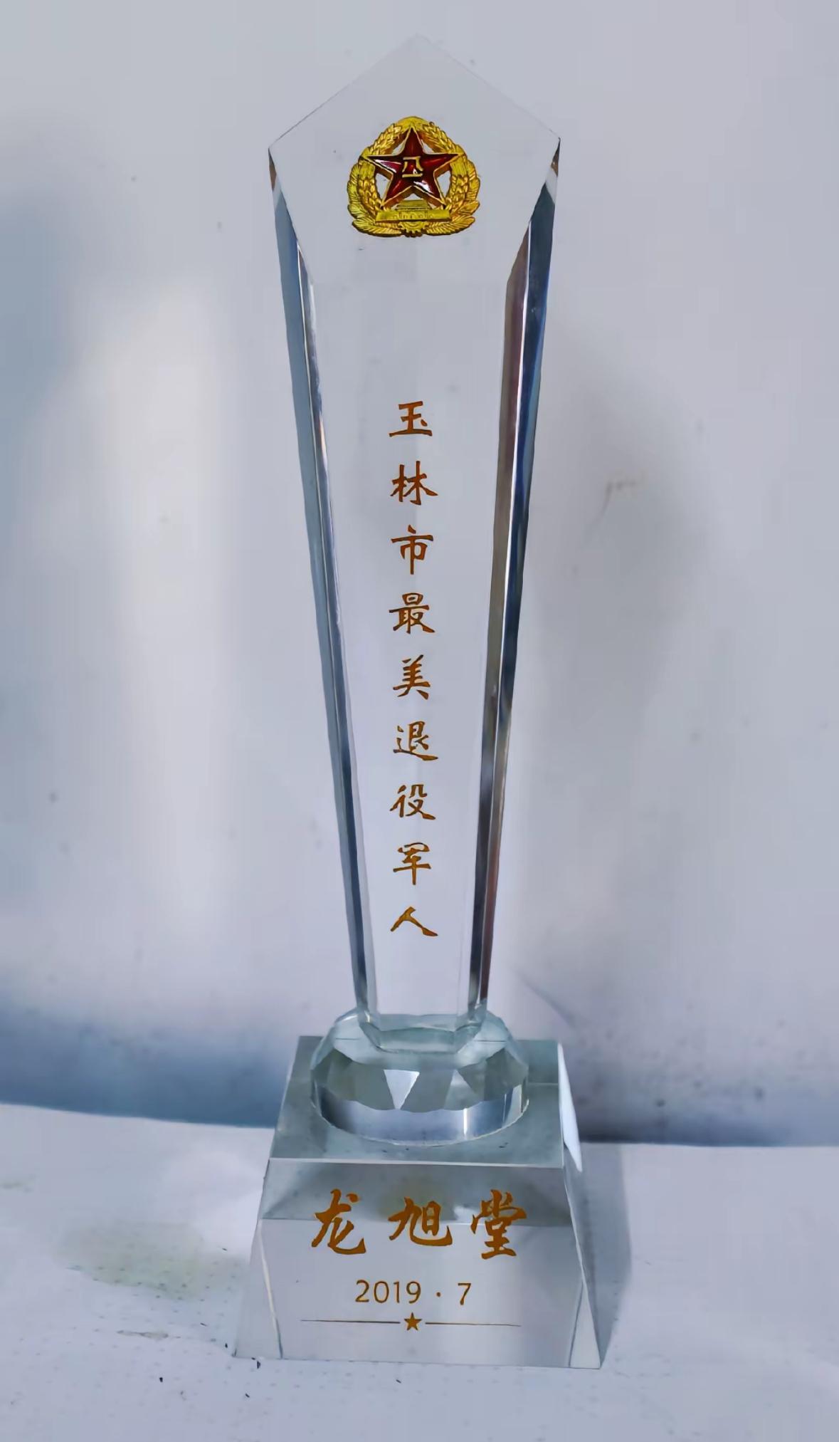 2019年7月,被评为玉林市最美退役军人,一等功臣龙旭堂老兵。