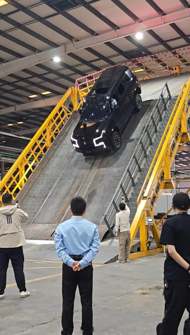 大家可能不知道这个场地有多硬核。就比如,45度可变坡道,表面都磨得发亮包浆了,普通人站上去都直接滑下来,更别说开车攀爬。但比亚迪新款仰望U8,它搭载的eTCS 2.0全速域路面感知控制技术,让每个车轮都能独立思考、单独控制。不打滑、不飞轮、不用锁差速器、不用选模式,甚至在45度坡上悬停后还能半坡起步。还有天门山天梯这种接触面积小,更滑的楼梯,也能稳定征服。而且它的电控系统能自动感知路面、自动分配扭矩,把抓地力压榨到物理极限。