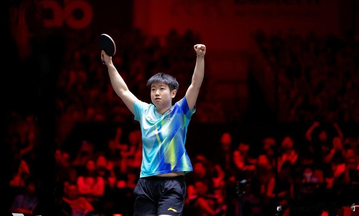 与此同时,一张孙颖莎赛场庆祝的照片也刷屏社交平台。照片中,她身穿蓝绿色调的中国队队服,双手高举,一手握球拍、一手握拳,眼神坚定,背景是热烈的赛场灯光与欢呼的观众,将夺冠后的喜悦与霸气展现得淋漓尽致。这张照片很可能拍摄于她职业生涯的重要赛事中,比如WTT大满贯或世乒赛等关键场次,成为她拼搏精神的生动写照。