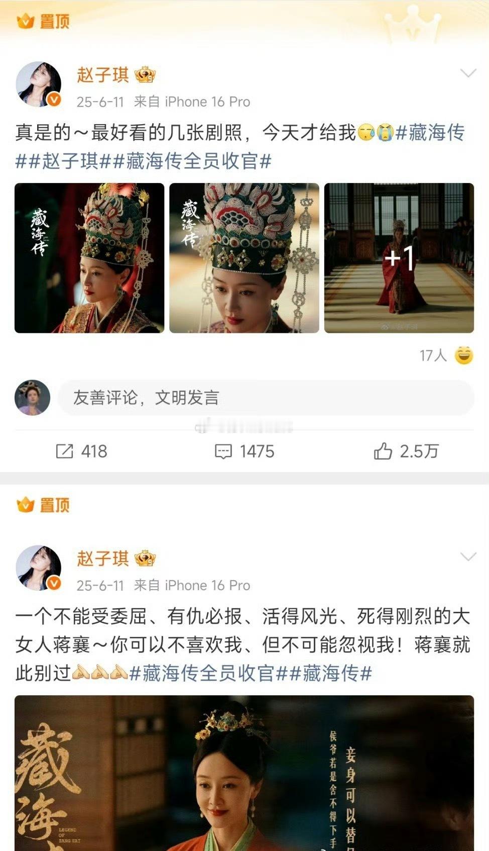 谁懂啊!2026浪姐第一个被淘汰,第一个0刷微博 被淘汰的是赵子琪,好奇点进她微博,结果置顶是……藏海传姐啊,你真的一心搞事业,综艺淘汰根本不耽误宣传新剧,主打一个心无旁骛,太好笑了!