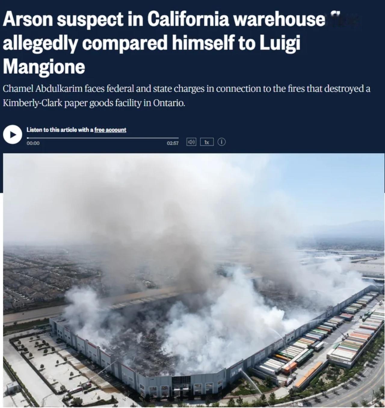 近日,美国联邦与加州州检方同时起诉29岁的Chamel Abdulkarim,指控他在南加州安大略市一座大型仓库内蓄意纵火,造成高达6.5亿美元的惊人损失。