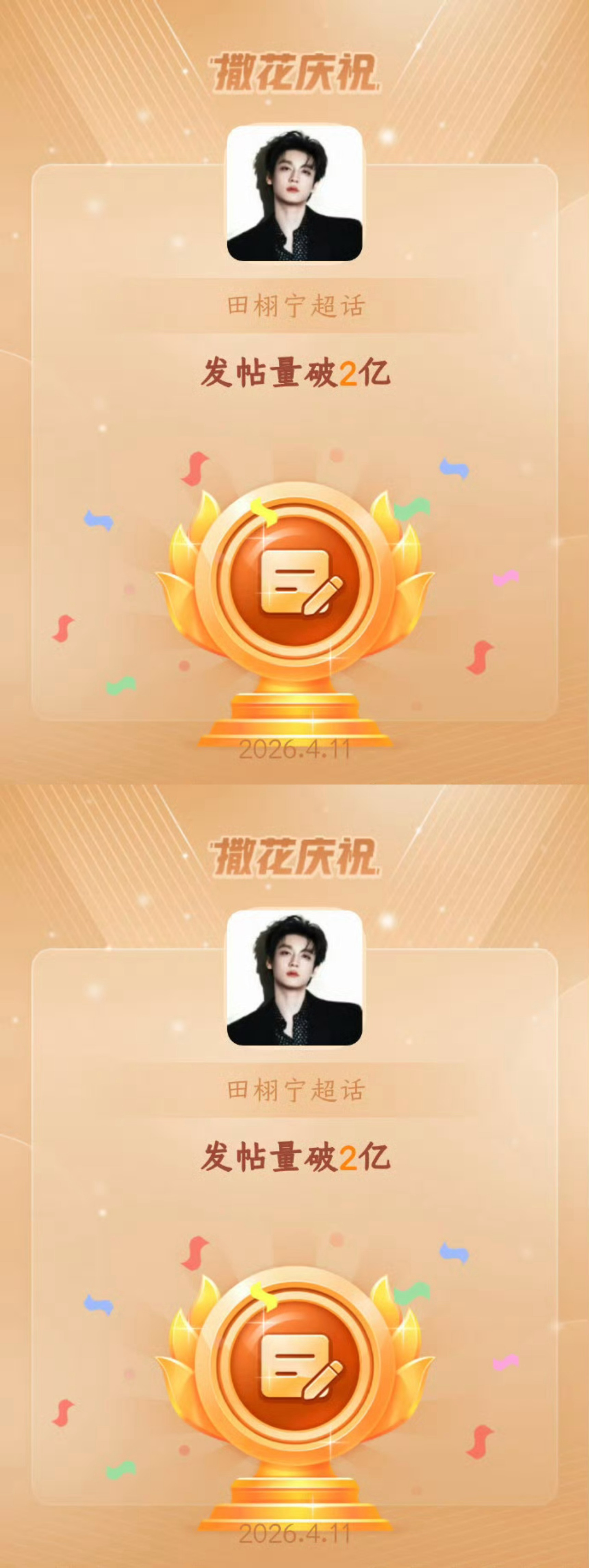 田栩宁超话发帖量破2亿 恭喜田栩宁超话发帖量破2亿!火火的很安心 田栩宁越来越好 ,不急不躁,稳步提升,从无到🔥,田栩宁和柠檬水🍋的最美好双向奔赴。