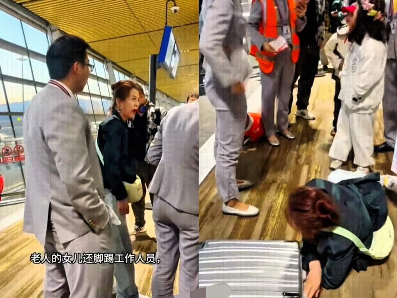 但是这一家五口硬闯,在此途中还有对机场工作人员有碰撞得动作,然后老太和一女的故意躺地上大喊大叫,装疯卖傻。这之间年轻的女人最无语的。当时购票的时候,是她购买的,不知这是老人的女儿或者是儿媳,她自己犯的错,最后全家承担,在是不是一家人不进一家门啊!我想说这个买票的时候不知道这个票是不能带那些行李的?应该是知道的,所以大家出门,出差,旅游乘坐飞机都知道所购买的票含有多大多重的行李。