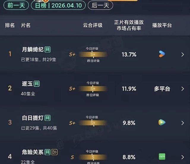 不服不行,张凌赫《逐玉》火出圈,已经播完这么多天了,还能力压热巴新剧,云合牢牢占据前三。
