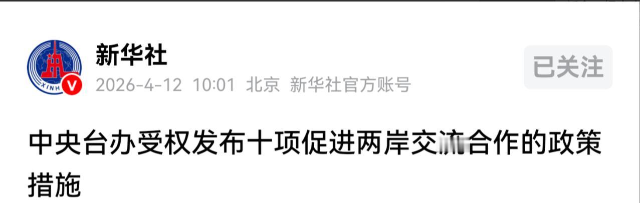 正是在这样的政治共识基础上,大陆方面推出了这十项实实在在的政策措施。这些措施覆盖了政治沟通、人员往来、经贸合作、文化交流等多个领域,每一项都直指台湾民众最关心、最迫切的问题。