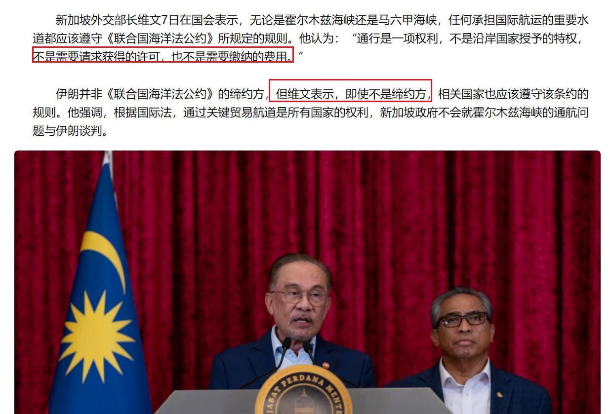 这事说起来也简单,伊朗在霍尔木兹海峡收过路费,八竿子打不着的新加坡先急了,外长跳出来对着伊朗一顿输出,张嘴闭嘴就是《联合国海洋法公约》,纯纯是猪鼻子插大葱——装象!