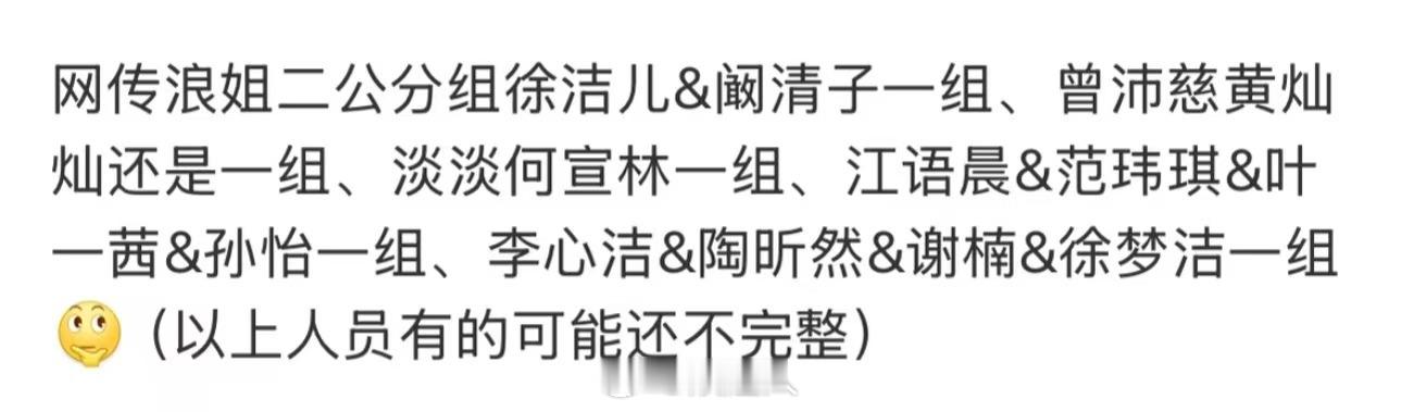 二公徐洁儿阚清子李小冉一组 网传浪姐二公徐洁儿阚清子李小冉一组?!徐洁儿和阚清子两位姐姐在二公选曲及分组下班路透里看着心情很好,不知道这样的组合会带来怎样的惊喜呢期待三位姐姐的二公舞台!乘风2026