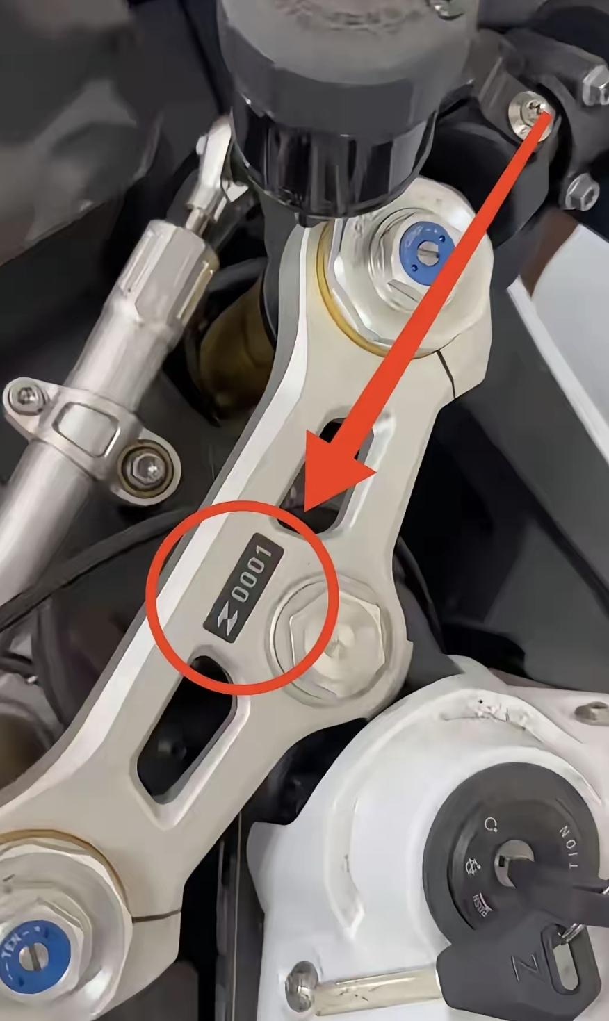 他买的是张雪机车的001号量产车,全车编号都是001,不是展车,是真能上路的首台。发动机、碳纤维车架、钛排气,全自研,没用国外技术授权。