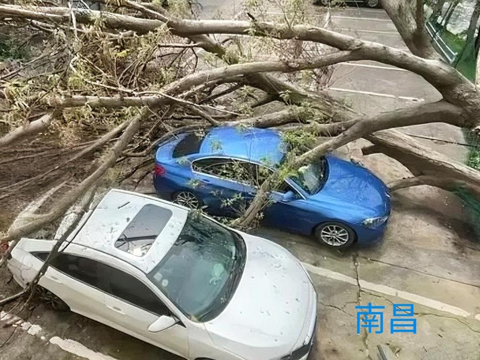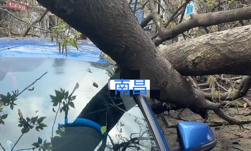 江西南昌,女子把车停在路边,大树倒下压坏保安,将近20小时没人处理,而且园林部门