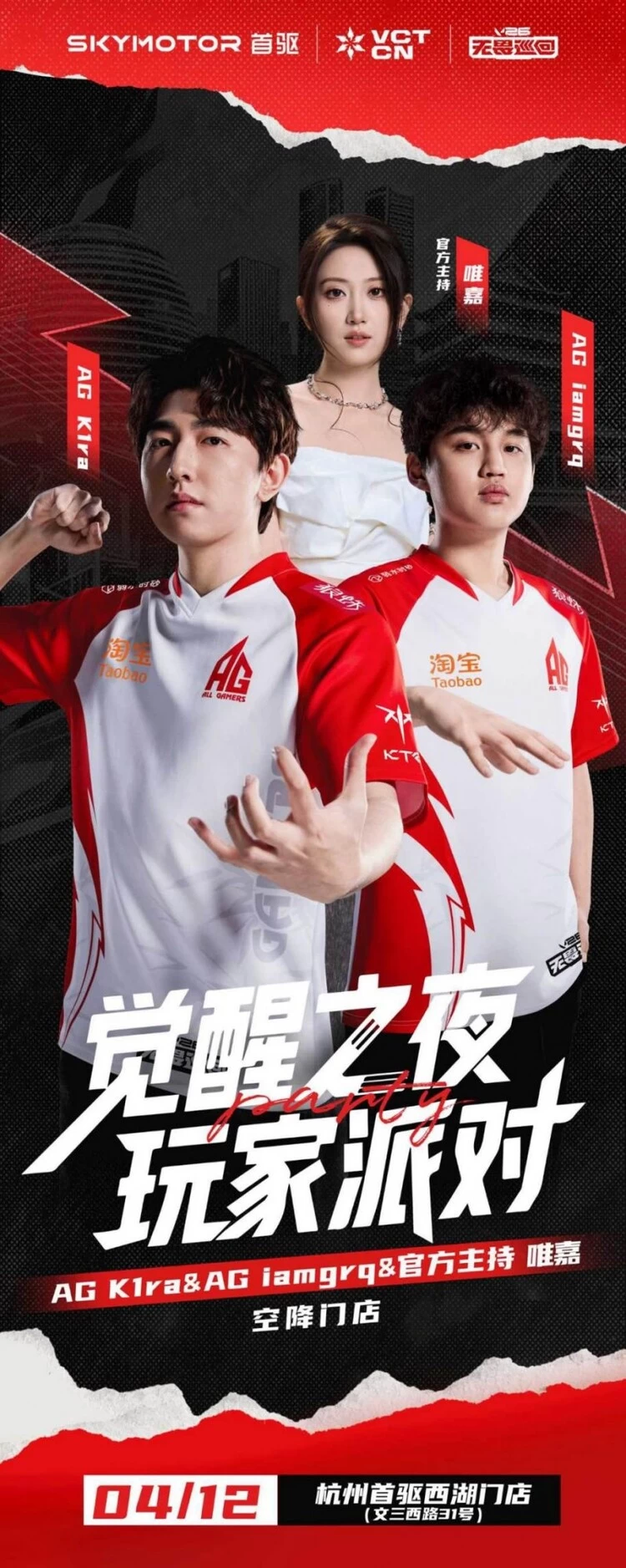 在线下场景方面,首驱也尝试将门店升级为赛事联动空间,融合产品展示、赛事观赛、粉丝互动等功能。此次无畏巡回杭州站期间,西湖区旗舰店将将以“觉醒之夜·玩家派对”为主题,将门店打造为可玩、可社交的玩家据点和城市社交入口。根据安排,活动将于4月12日18时正式开始,现场将设置荧光手绘、NPC对抗、音乐演出等互动环节。VCTCN明星选手AGK1ra、AGiamgrq及无畏契约电竞赛事官方主持唯嘉将以“一日店长”身份到场,参与互动挑t战、签名合影等环节。其间,AGK1ra还将现场抽奖,奖品包括首驱电动车、亲笔签名照及赛事周边。