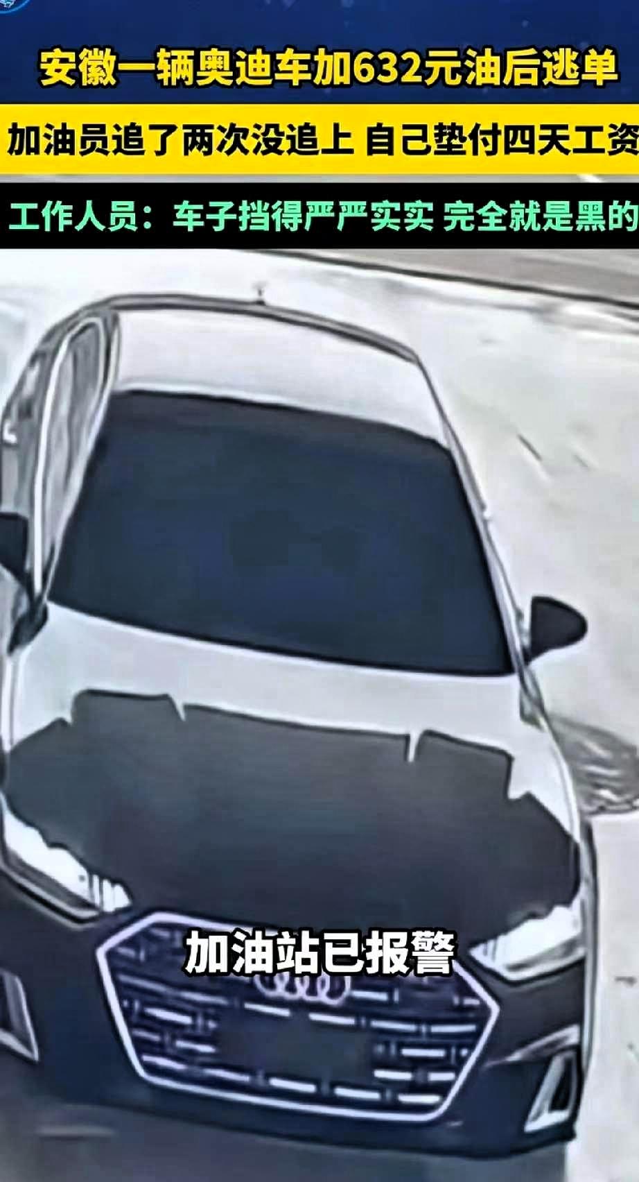 江西九江加油逃单人员刚到案,安徽又来了一个开豪车逃单的。一名驾驶人驾驶无牌奥迪A