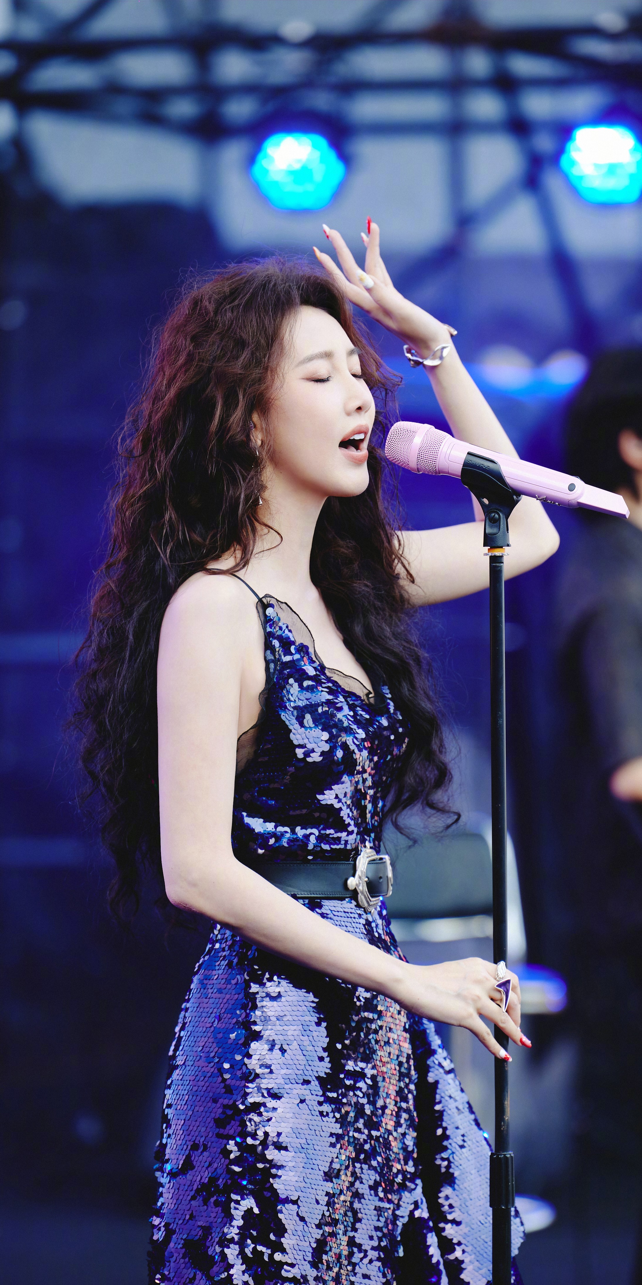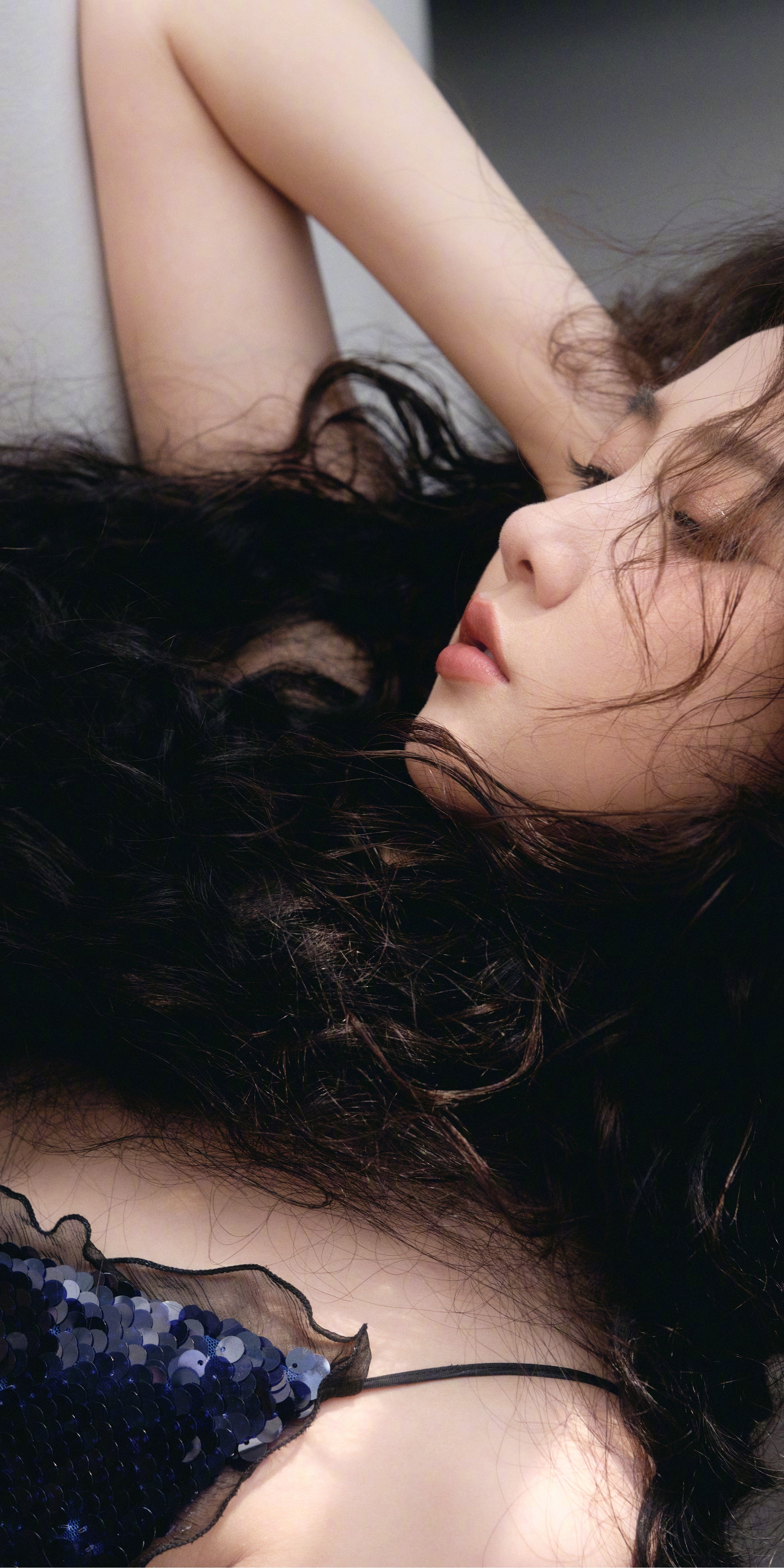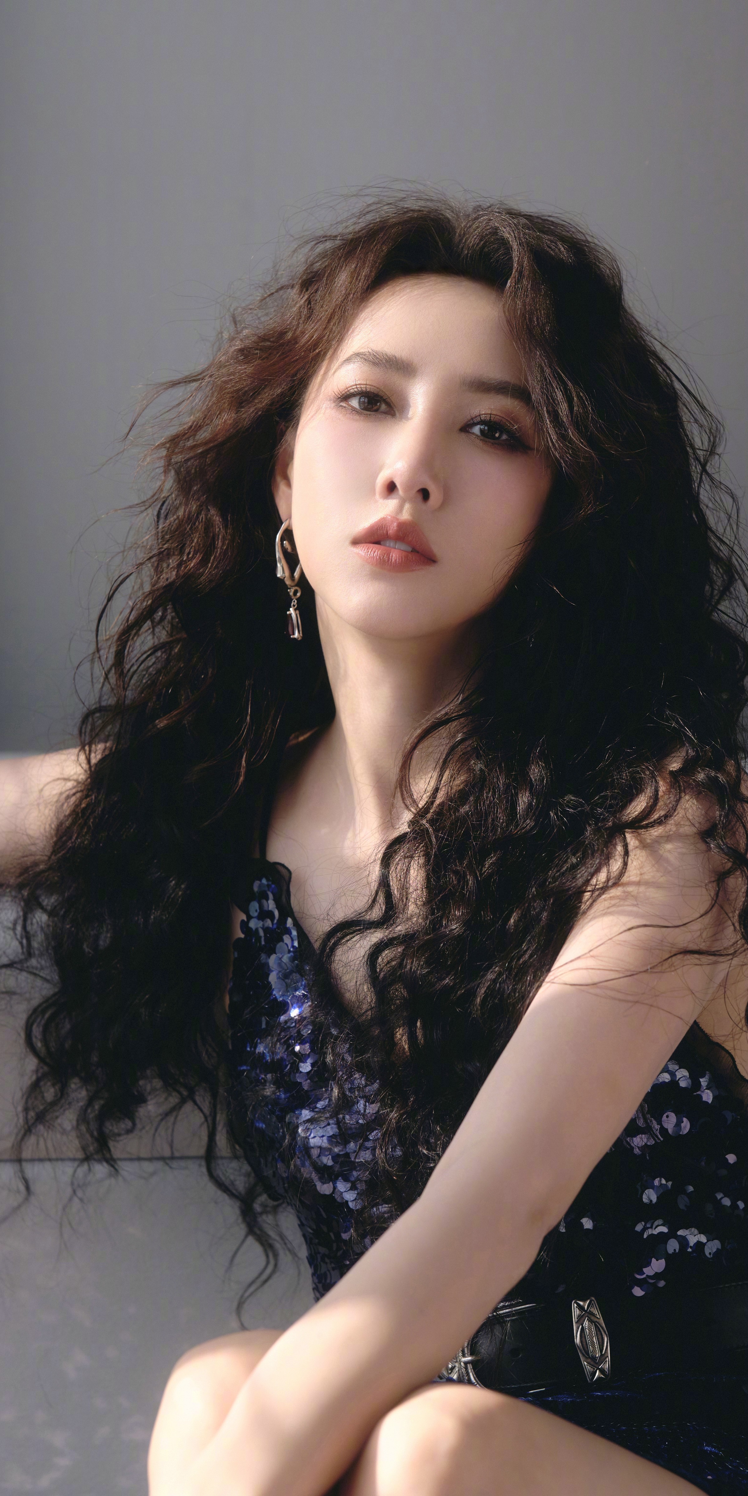 弦子壁纸精选:卷发蓝裙,酷美怡人。弦子
