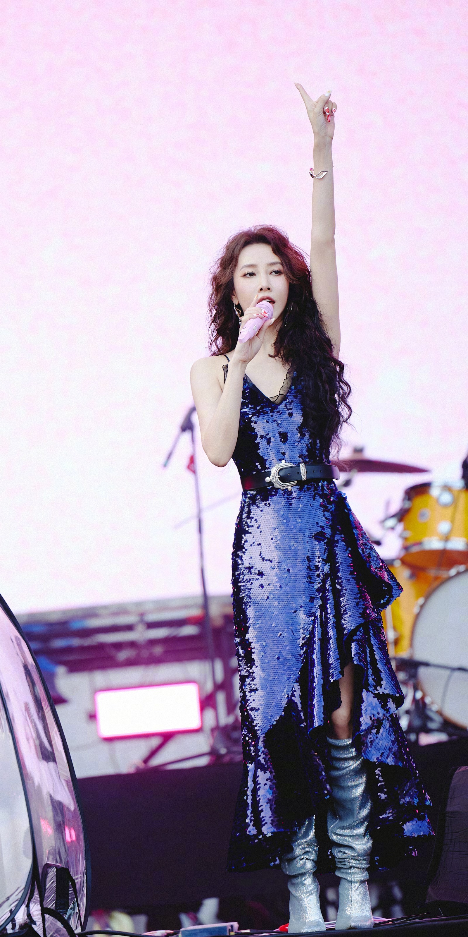张纯烨穿搭壁纸:浓颜精致高马尾,黑裙修身显婀娜。张纯烨