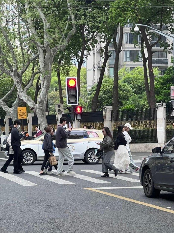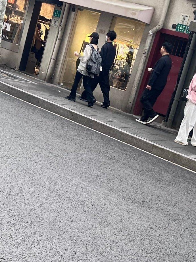 上海街头偶遇朴宝剑路人视角里的朴宝剑好随性,戴着口罩安安静静逛街,看到海报就停下来拍照,太真实了朴宝剑街头和王安宇海报自拍