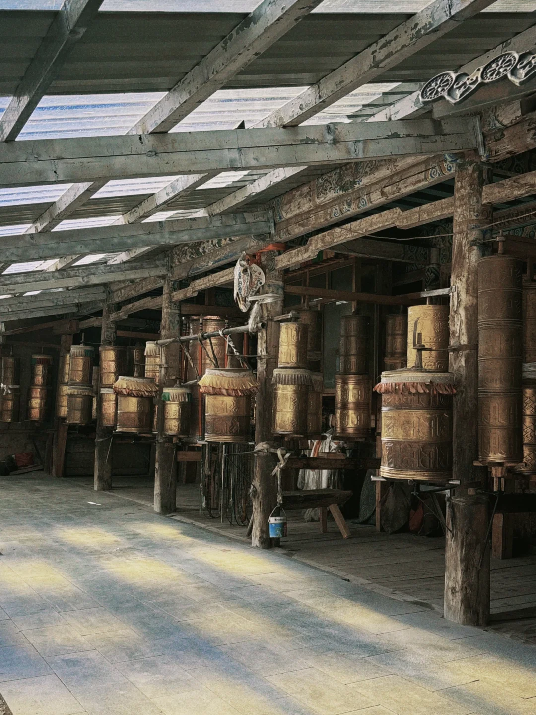 门票40,早上从民宿步行到达景区,一进门映入眼帘的就是超长转经筒,每位藏民都在步履匆匆虔诚地转经。往里走便是寺庙,在入口处,每间隔半小时,会有喇嘛带着游客免费讲解,真的要听下才没白来。我们的讲解员是名18岁的小喇嘛,刚开始因为紧张不敢说话,他的同伴还让游客们一起为他鼓掌鼓励,后来慢慢渐入佳境哈哈。整体有种质朴的感染力。(我们是中午离开的,据说下午下了多年难遇的大冰雹,出门在外是需要点运气的)