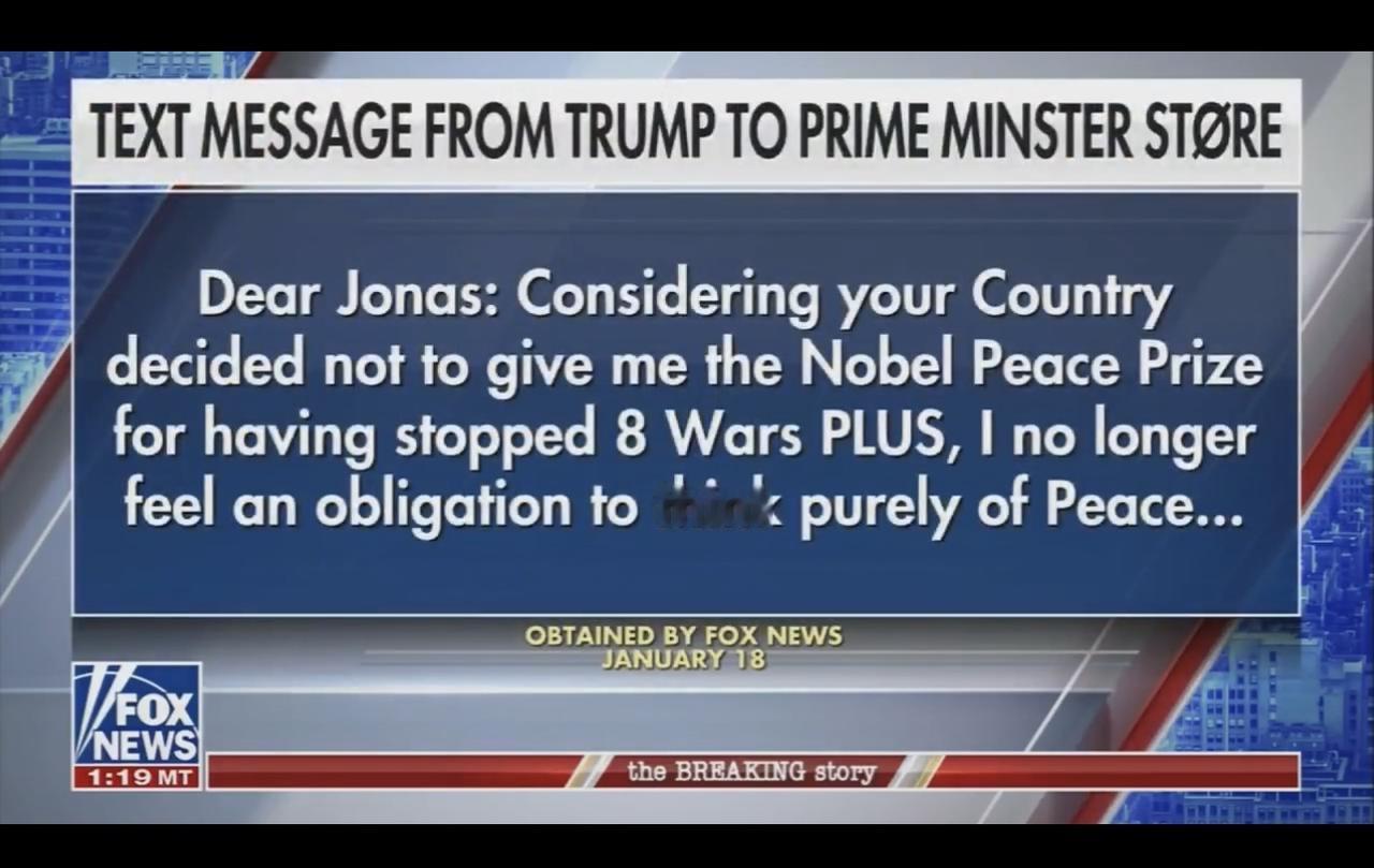 特朗普:“考虑到贵国决定不授予我诺贝尔和平奖,以表彰我阻止了8场战争以上,我不再觉得有义务只想着和平。”